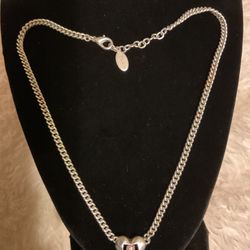 Beautiful Silver (Guess)necklace With Heart Pendant With Pink Rhinestone $15New Haven, CT