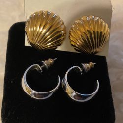 Gold Shell Earrings And Silver Hoop Earrings (Avon)$10New Haven, CT