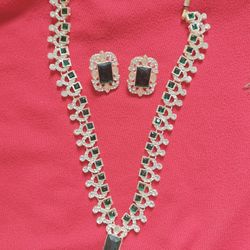 Emerald Silver Long Neck Piece With Earrings $20Danbury, CT