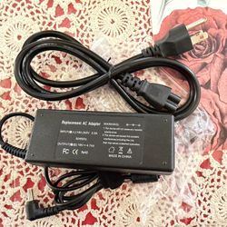 Replacement AC adapter with power cord. Black rectangular adapter with attached DC plug. Standard two-prong power cable included. Simple, functional p$20Portland, CT