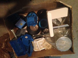 Box of electrical recess lights, trim, outlet and switch covers and boxes$40Newtown, CT