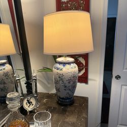 Beautiful large ceramic table lamp with detailed floral design in blue, cream, and soft pastel tones. Features a rich wood base and matching wood acce$60Lewes, DE