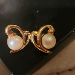 NICE! Gold Heart Shaped Earrings With Pearl $7Harrington, DE