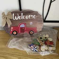 Welcome Sign and Home Decoration. Country red Truck Decoration with 12 Interchangeable Holiday Icons, Suitable for Spring, Easter, Autumn Harvest, Hal$24Dover, DE