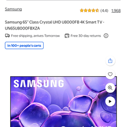 65" Samsung 4K Smart TV – Backlight Issue$70Winter Haven, FL