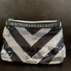 Victoria's Secret Sequined Makeup Beauty Bag Black and Silver Sparkle Clutch$15Frostproof, FL