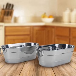 (400018) Ice Bucket Galvanized Tub, 2 Pcs 3 Gallon Oval Beverage Tub, Drink Cooler Ice Buckets for Parties, Metal Bucket with Handle for Beer Whiskey $18Cypress Gardens, FL