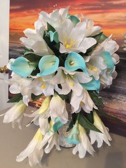 Flowers, white lily, lite blue calla Lily’s.order # 61$50Kissimmee, FL