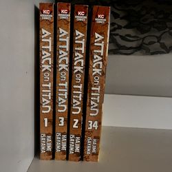 Attack on titan manga vol 1,2,3 and 34$20Haines City, FL