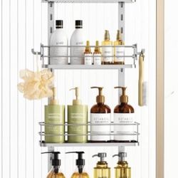 Adjustable Over The Shower Door Hanging Organizer, Bathroom Organizer with 4 Razor Hooks, Rust Resistant Shower Basket, 4 Tier, Silver$25Cypress Gardens, FL