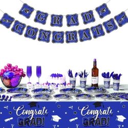 Grad Party Supplies 24PC Banner Plates Napkins Cups Tablecloth Utensils (Blue)$9Sebring, FL