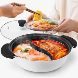 Food Grade Stainless Steel Aluminum Alloy Shabu Shabu Hot pot with Divider&Lid for Induction Cooktop Gas Stove Dual Sided Soup Cookware, 13 inch-White$22Cypress Gardens, FL