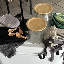Variety of Kitchen items, glass containers, Aprons, dish cloths, oven mitt, wooden spoons$30Winter Haven, FL