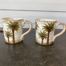 2 Tabletops Unlimited Fiji Mugs Hand Painted Palm Tree Tropical Sunny$30Frostproof, FL