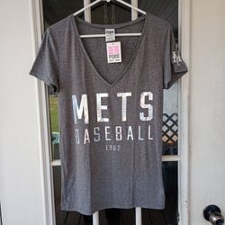 Pink Victoria Secret New York Mets Gray V-neck T-shirt Sz M Women's NWT $30Frostproof, FL