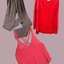 Womens Old Navy LEGGINGS DARK GREY HI-WAIST/RED SWEATER & Candies CAMISOLE ~ LOT$8Sebring, FL