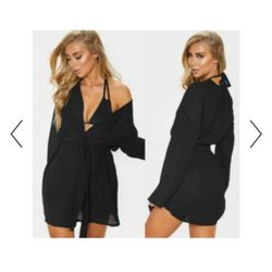 PrettyLittleThing Women's Size 4 Black Crinkle Textured Short Beach Kimono$25Frostproof, FL