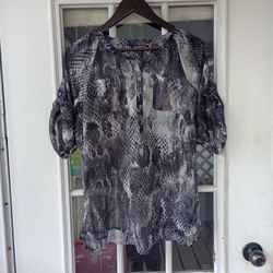 Express Womens Roll Tab Sleeve Henley Semi Sheer Snake Black Blouse Top Size XS$10Frostproof, FL