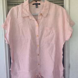 Ellen Tracy white linen tie up button up short sleeve blouse$30Frostproof, FL