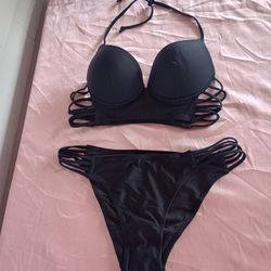 Fashion Nova A Destination Strappy Halter 2 Pc. Bikini Set Black Size L NWT.$15Frostproof, FL