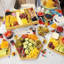 (324) Bamboo Serving Trays Charcuterie Platter 16.5"x11.8"(42x30cm with Handle, Set Includes 1xHexagon 12.5"(32cm)+1xSquare 7.8"(20cm)+1xSquare 5.9"(1$20Cypress Gardens, FL