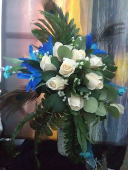 White roses blue Lily’s tropical leafs peacock feathers$65Kissimmee, FL