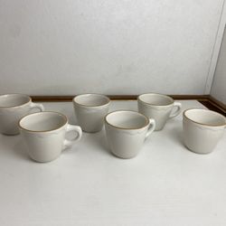 6 Syracuse China Restaurant Coffee Mug Cup Tan Light Brown Dark Mustard Trim USA$40Frostproof, FL