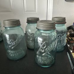Vintage Quart Blue Glass Ball Mason Jars With Lids (all for $40 Or $10 Each)$10Lake Placid, FL