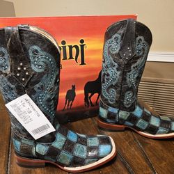 Ferrini Ladies Blk/Teal Patchwork Cowboy Boots$100Sebring, FL