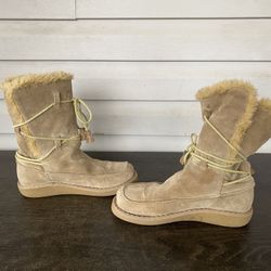Earth Shoe Miami Suede Lace Up Boots Sz 8/40 Tan Faux Fur Lined Booties EUC$20Frostproof, FL