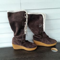 Michael Kors Brown Suede Sheepskin Lace Up Wedge Knee High Boots Size 7.5M$45Frostproof, FL