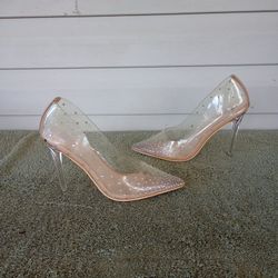 Olivia Ferguson heels clear transparent size 5.5$12Frostproof, FL