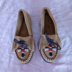 Minnetonka Suede Thunderbird Moccasins Beaded Sz 7$25Frostproof, FL