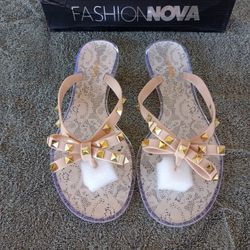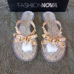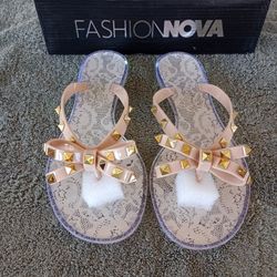 Fashion Nova Summer Romance Studded Flat Sandals Nude Sz 10$15Frostproof, FL