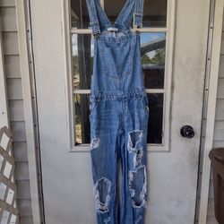 Machine Jeans Overalls Destroyed Distressed Blue Denim Buttons Pockets Size 26$20Frostproof, FL