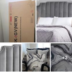 Brandnew In Box Gray King Size Headboard (headboard Only) Canvas,two ,2ft Tall Black Vases,mosaic Flower Vase And 2 ,20x20 Black Pillows And 2 Gray Pi$350Kissimmee, FL