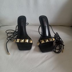 Black Stiletto High Heels with Studded Strap & Lace Up Detailing Size 7$60Frostproof, FL