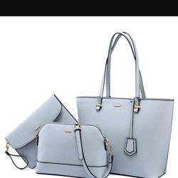 Women's Shoulder Bag & Tote & Clutch Bag 3 Piece Set, Light Blue,