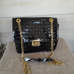 INVECE ITALY PATENT LEATHER SHOULDER XBODY GOLD PLATE CHAIN BAG BLACK GOLD $100Frostproof, FL