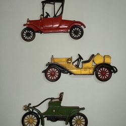 Sexton metal wall art, 1970 stamped & dated. 2 groups of 3 each Vintage Metal Cars & Trolley Cars (6)$48Okeechobee, FL