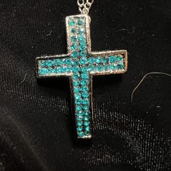 Beautiful Silver Cross Necklace With Blue Stones $12Eagle Lake, FL