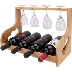 Wine Racks countertop with Glass Holder, Bamboo Tabletop Wine Rack, Counter top Bottle Wine Rack Shelf, Freestanding Wine Rack Hold 4 Bottles and 4 Gl$18Cypress Gardens, FL