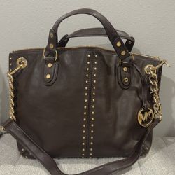 Michael Kors Brown Leather Studded Tote with Gold Hardware$60Waukee, IA