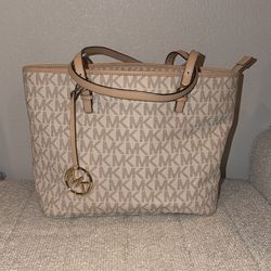 Michael Kors Beige/Tan MK Logo Tote with Gold Charm$60Waukee, IA