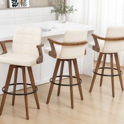 Swivel Bar Stools Set of 3 - 30 inch Mid Century Bar Stools with Curved Back and Arms, Walnut Craftsmanship, Faux Leather Seat, Kitchen Island Stools $165Monrovia, CA