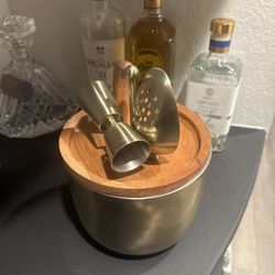 Brushed Metal Ice Bucket w/ Wood Lid & Bar Tools– Mid-Century Style$80San Gabriel, CA