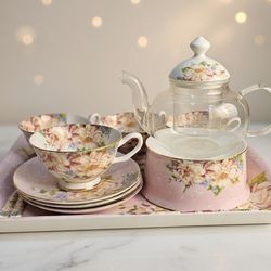 Elegant Floral Tea Set - Glass Teapot + Porcelain Cups + Pink Tray$99San Gabriel, CA