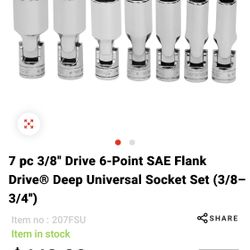 7 Pc 3/8” Drive 6-point SAE Flank Drive Deep Universal Socket Set (3/8-3/4”)$350Los Angeles, CA