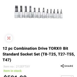 12 Pcs Combination Drive TORX Bit Standard Socket $450Los Angeles, CA