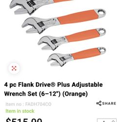 SNAP ON 4 Pc Flank Drive Plus Adjustable Wrench Set (6-12”)Orange $450Los Angeles, CA